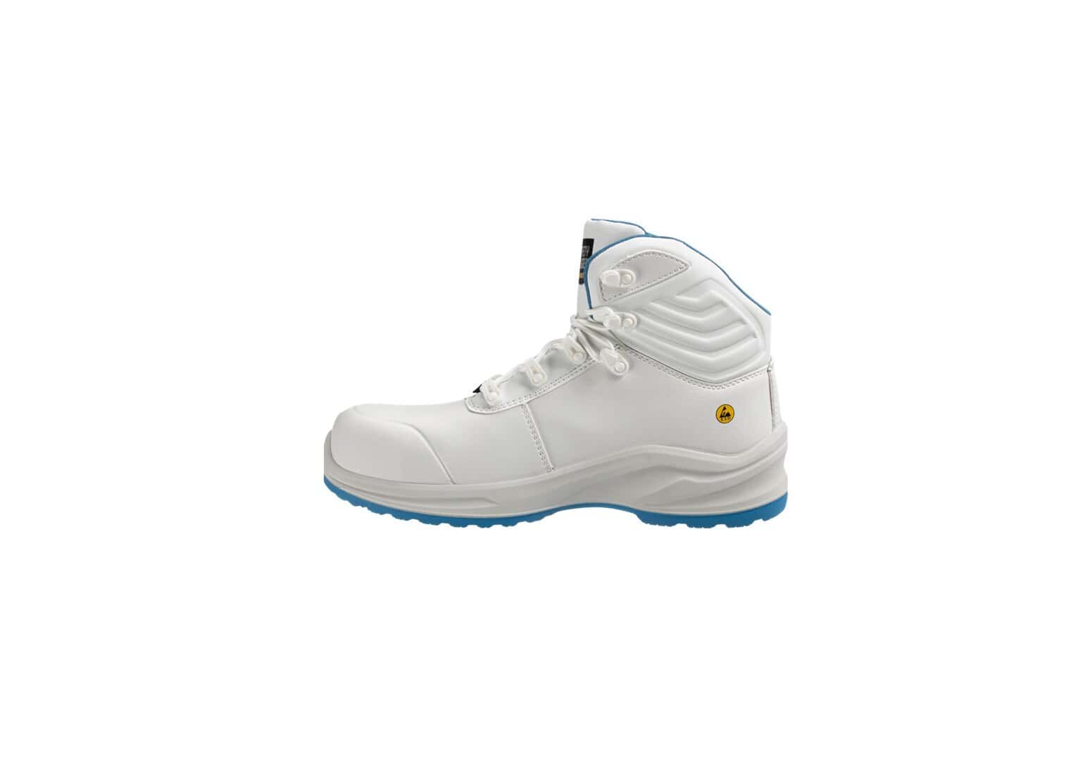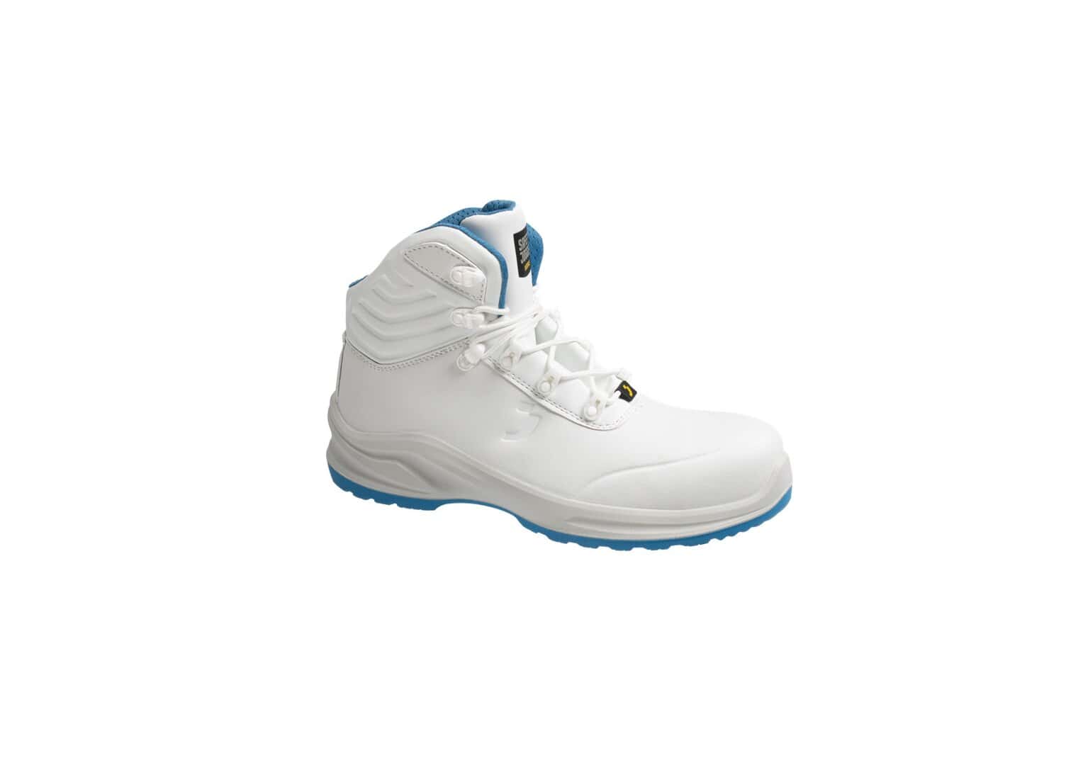 The Safety Jogger MODULO PURE S3S M TG in white is a modern, Mid-cut safety shoe designed for professionals in hygiene-critical industries such as food handling, healthcare, catering, painting, and logistics. Made from high-quality Lorica® synthetic microfiber, the upper is water-, oil- and stain-resistant, easy to clean, and completely vegan. Its lightweight, metal-free construction ensures comfort throughout the day, while the breathable 3D mesh lining and cushioned SJ foam footbed keep your feet cool and supported even during long shifts.