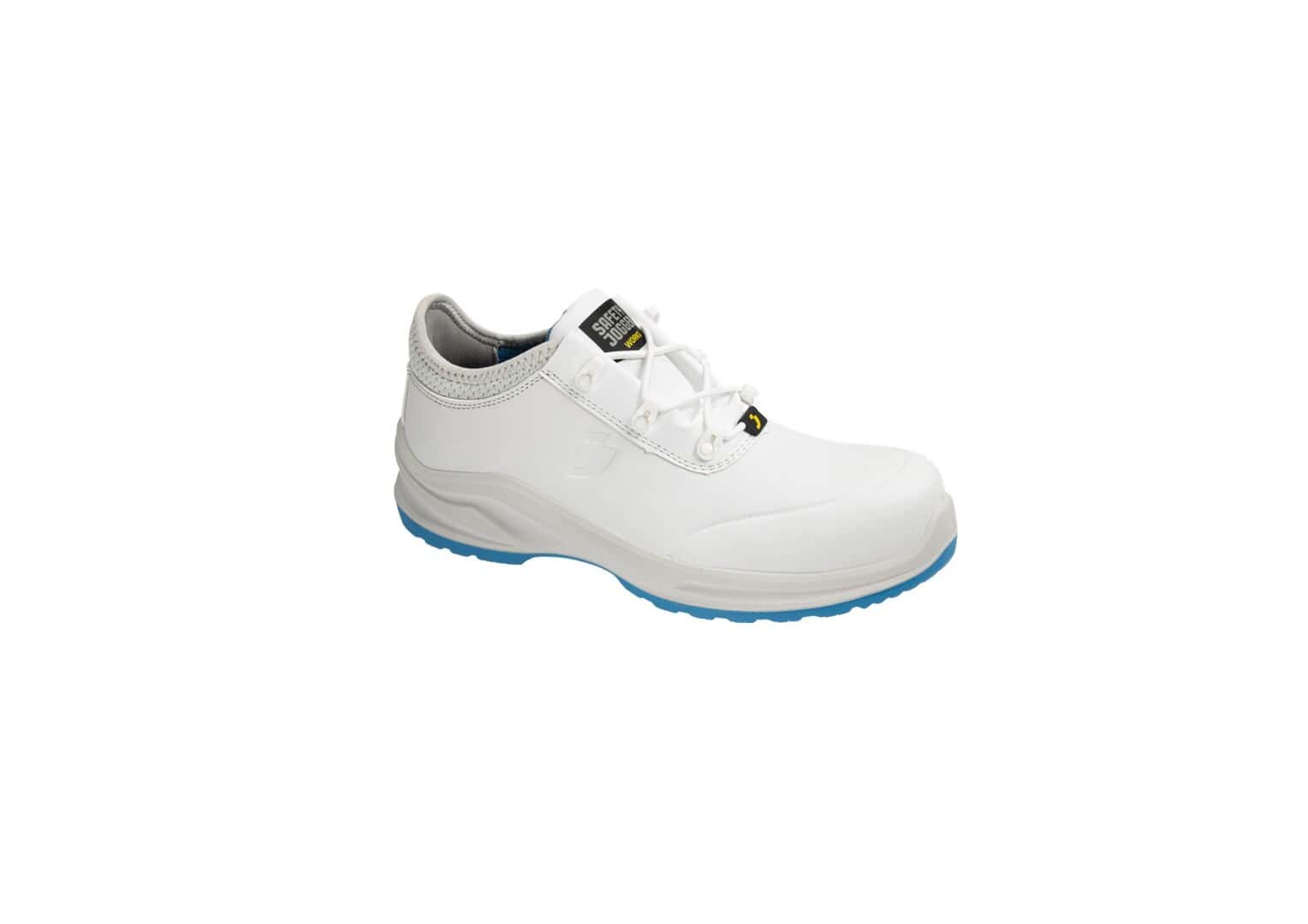 The Safety Jogger MODULO PURE S3S L TG in white is a modern, low-cut safety shoe designed for professionals in hygiene-critical industries such as food handling, healthcare, catering, painting, and logistics. Made from high-quality Lorica® synthetic microfiber, the upper is water-, oil- and stain-resistant, easy to clean, and completely vegan. Its lightweight, metal-free construction ensures comfort throughout the day, while the breathable 3D mesh lining and cushioned SJ foam footbed keep your feet cool and supported even during long shifts.